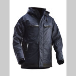 Wind- en waterdicht gewatteerde jas met getapete naden. Ruime dubbele borstzakken; twee borstzakken met kleppen afsluitbaar met klittenbandsluiting en twee met een waterdichte rits. Steekzakken met klep en rits. Drie binnenzakken, twee met rits en één met klittenbandsluiting. Verstelbare mouwen en zoom. Reflecterende details op zakken en onderrug. Gewatteerde capuchon met trekkoord, afneembaar met drukknoopbevestiging. Waterkolom: 13.000 mm. Ademend vermogen: 3300 g/m²/24 uur. Gecertificeerd overeenkomstig EN 343 voor regenkleding.