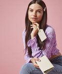 TearAway label for ease of rebranding. Saffiano fine grain. Multi-purpose use. High shine gold metal zip. Zippered main compartment. Internal foam padding. Soft-touch lining. Wristlet strap.