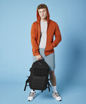 Water-resistant fabric. Wide zip opening for easy access. Front pocket organiser section. Internal slip pocket. External bottle pocket. Secure wireless headphone holder. Easy-access attachment clip. Metal ventilation eyelets. Breathable padded mesh back panel. Ergonomically designed straps for everyday comfort. Padded grab handle. TearAway label for ease of rebranding.