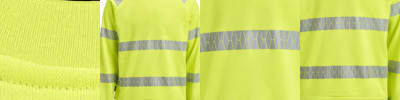 - Heat-pressed seamless reflective strips with gaps at side seam for increased flexibility and comfort.