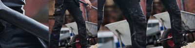 Broekspijp voorzien van versterking aan achterkant
