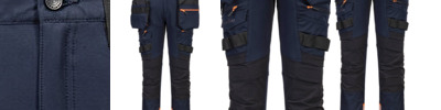 Titanmill Pro stretch: 93% Polyester, 7% Elastane. Four-way stretch fabric for ease of movement and added comfort. High-rise back waistband ensures protection in all working positions. Reflective trim for increased visibility and safety. Two-tier kneepad pockets allow two positioning options. Easy grip pullers are attached to all zips. Multiple side zip compartments for secure storage. 11 pockets for ample storage. Two side pockets. Two side zip pockets for secure storage. One phone pocket. Two back zip pockets. One welt pocket. CorePro reinforced thigh pocket. Hammer loop for secure storage of work tools. Side elastic waist for ultimate wearer comfort. Pre-bent knees allow for increased freedom of movement. Crotch gusset to reduce stress and prevent seam failure. Zip fly with Portwest branded stud button. Slim fit design for exceptional comfort. Bartacked at all stress points. Triple-stitched seams for extra durability. 40+ UPF rated fabric to block 98% of UV rays. Extendable leg length (31" to 33").