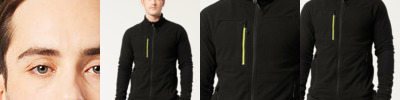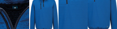 Anti-pill, durable fleece fabric. Four pockets for ample storage. Zipped chest pockets. Ergonomically shaped hood for a perfect fit. Elasticated cuffs for a secure fit. Dropped-back hem for better coverage.