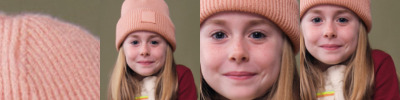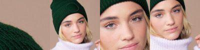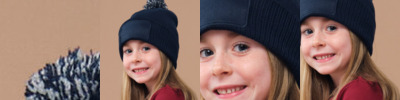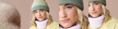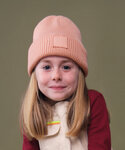 Ribbed cuff. Double-layer knit. Two-tone pom pom. Cotton twill patch for decoration. TearAway label for easy rebranding.