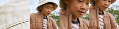 - 100% Heavy washed cotton. Fabric offers protection against sunlight: UPF 50+. Vintage styling. Unisex styling. Stitched ventilation eyelets. TearAway label for easy rebranding. Available in two sizes: S/M (3–6 years) and M/L (7–12 years).