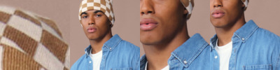 Checkerboard print design. Fine ribbed knit. Double-layer knit. Darted crown. Wide cuffed design for optimal decoration. TearAway label for easy rebranding.