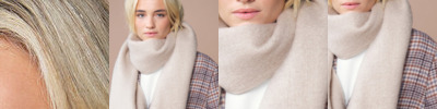 Contains 100% certified recycled polyester. Luxury soft-touch fabric. Chunky, wrap-around design. Oversized style. Tassel trim. TearAway adhesive fabric label.