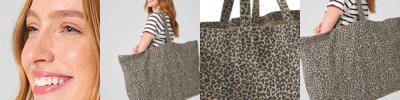 Washed-effect finish. Leopard print design. Extra-large capacity. Self-fabric carry handles. Can be carried by hand or over the shoulder. CutAway label for ease of rebranding. Due to the garment-dyeing process, each colour is unique and may vary, with potential fading over time. Contains 70% GRS-certified recycled cotton and 30% GRS-certified polyester, certified by Control Union CU811033.