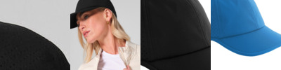 Soft EVA peak. Moisture-wicking, ultra-soft sweatband provides all-day comfort. Laser-cut ventilation for enhanced breathability. Six-panel design. Soft, unstructured crown. D-ring with reflective pull tab. Micro Rip-Strip™ closure. Tear-away label for ease of rebranding.
