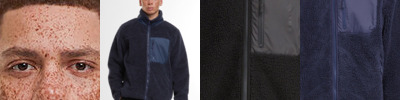 Cosy sherpa shell fabric. Warm internal fleece material. Unisex design. Functional zipped pockets. Stand-up collar. Nylon chest pocket. 30°C. Easycare.