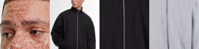 Loose fit. Full-zip. Stand-up collar. Side pockets. Half-moon at the neck.
