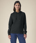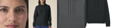 Women’s recycled cotton hoodie. Set-in sleeves. Double-layered hood in self-fabric. Round drawcords in matching colour with closed-end metal tipping. Embroidered eyelets. Twin-needle topstitching on seams at sleeve cuffs and hem. 1x1 rib at sleeve cuffs and hem. Kangaroo pocket. Inside herringbone back neck tape. Self-fabric half-moon at the back neck. Contains 50% GRS-certified recycled cotton and 50% OCS-certified organic cotton, certified by Control Union CB-CUC-1393082.