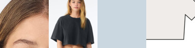 Cropped, boxy fit. Oversized sleeves. Double-needle cover stitch. Cotton thread. Side-seamed. Tear-away label. 18 singlets.