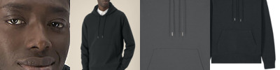 Unisex recycled cotton hoodie. Set-in sleeves. Double-layered hood in self-fabric. Round drawcords in a matching colour with closed-end metal tipping. Embroidered eyelets. Twin-needle topstitching centred on seams at sleeve cuffs and hem. 1x1 rib at sleeve cuffs and hem. Kangaroo pocket. Inside herringbone back neck tape. Self-fabric half-moon at the back neck. Contains 50% GRS-certified recycled cotton and 50% OCS-certified organic cotton, certified by Control Union CB-CUC-1393082.