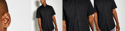 Fused collar. Stand up button down collar. Single needle stitched armholes. Twin needle stitched sleeve and side seams. Optional pocket. Back Yoke. Rounded hem. 2 spare button (one each size). Kustom Kit® Woven back neck label.
