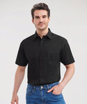 Smart corporate short sleeved shirt in classic poplin fabric. True easy care fabric requires minimal ironing. Classic single-button collar. 7 button placket with matching colour buttons. Single pocket over left chest.